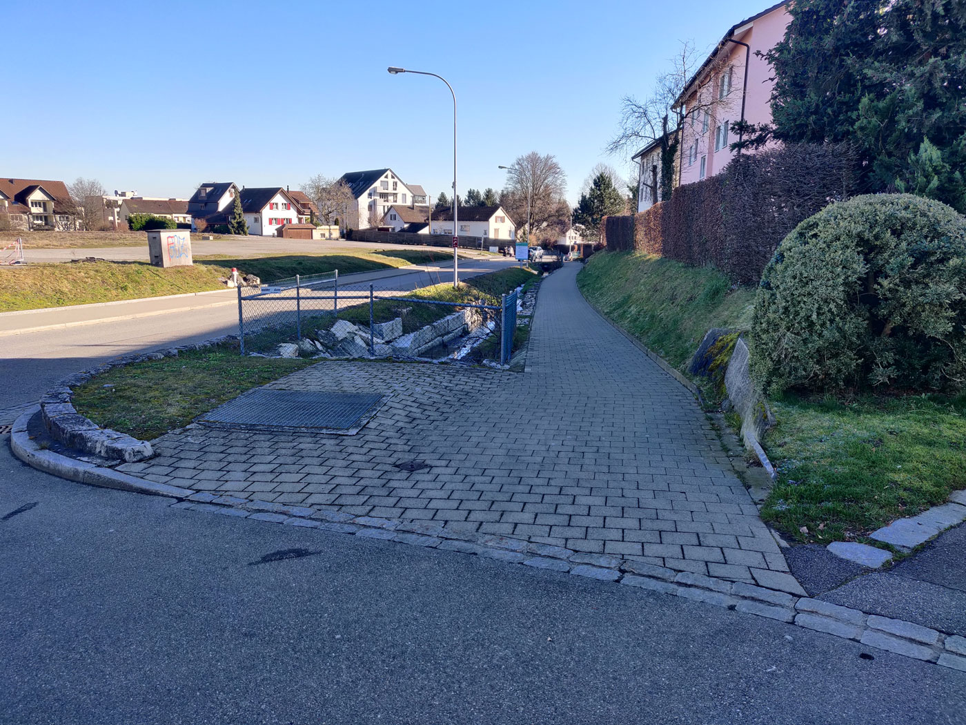 Le point de départ du projet était l’objectif stratégique de la commune de réaménager l’espace routier de la Geerenstrasse tout en rendant le ruisseau accessible à la population. Dès l’étude des variantes, les terrains privés adjacents ont été activement pris en compte, de sorte que le ruisseau a pu être élargi malgré l’espace restreint. Le projet a été approuvé par l’assemblée communale et le conseil communal, et les travaux de construction ont commencé à l’été 2023. La durée réelle des travaux sur le cours d’eau a été d’environ quatre semaines.